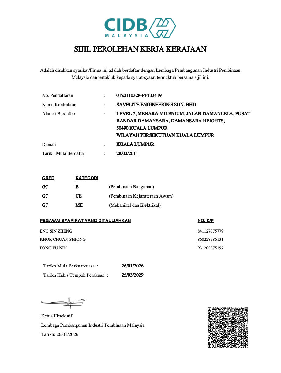 Lembaga Pembangunan Industri Pembinaan Malaysia (CIDB)Perakuan PendaftaranRegistration No. : 0120110328-PP133419