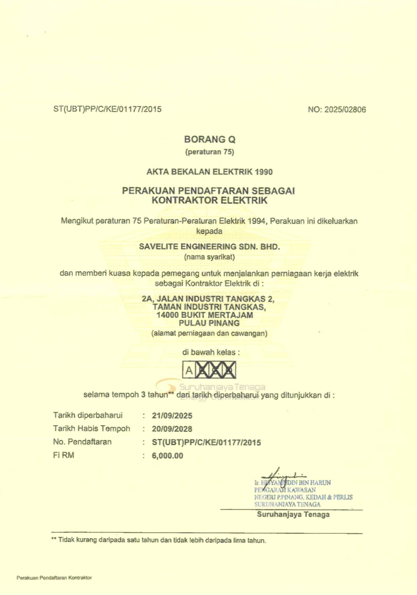Suruhanjaya Tenaga (JBE)Registration No.: ST (UBT)PP/C/KE/01177/2015 – CLASS A
